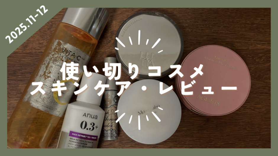2025年11-12月に使い切ったコスメとスキンケアをレビューします!