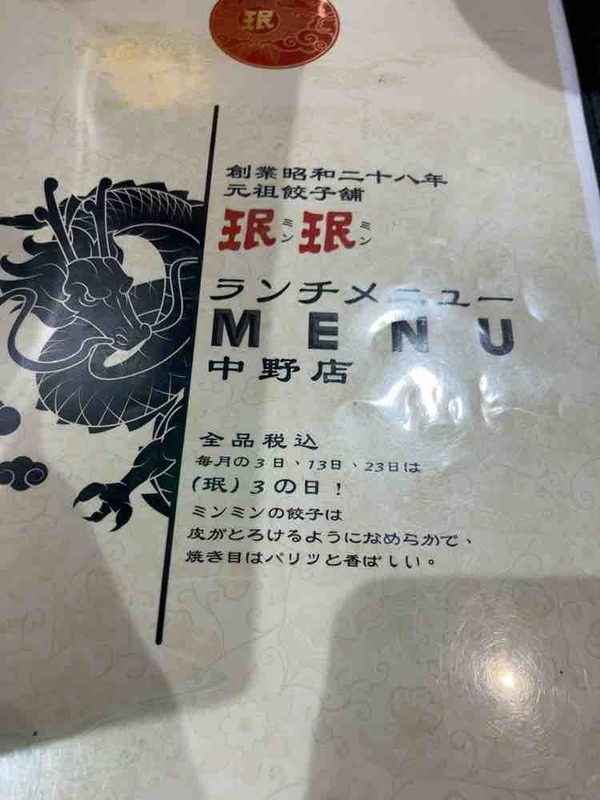 - 店名:珉珉 中野店