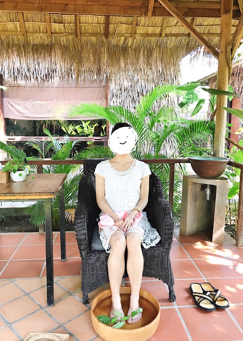 緑に囲まれた中で足湯をしつつ、マッサージを受けることは日本ではなかなか出来ないので、とても気持ちがいいです。